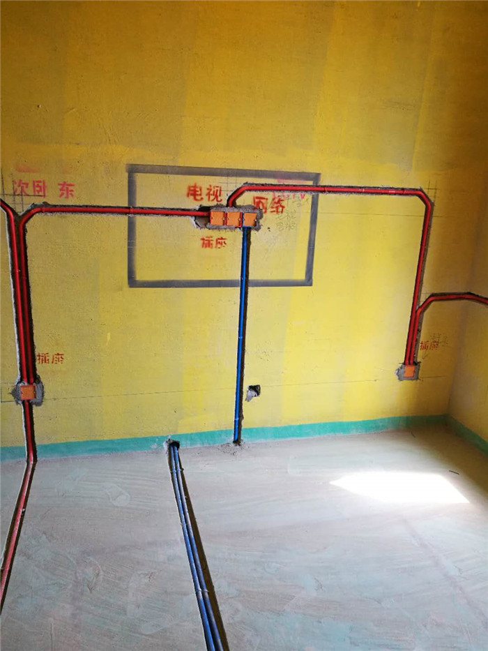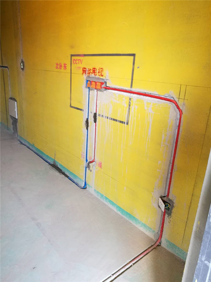 藍色為弱電,紅色為強電,強弱電分開鋪設以防干擾