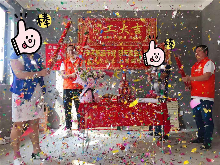 業主、設計師、項目經理開工合影: